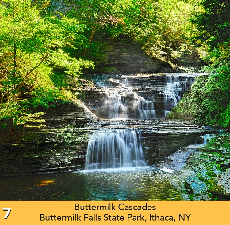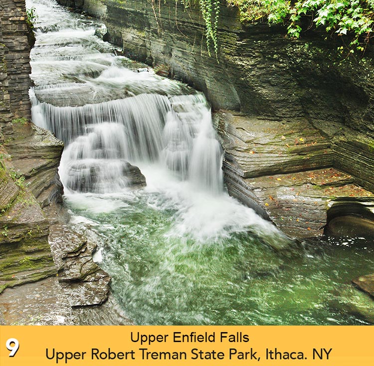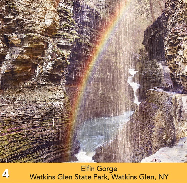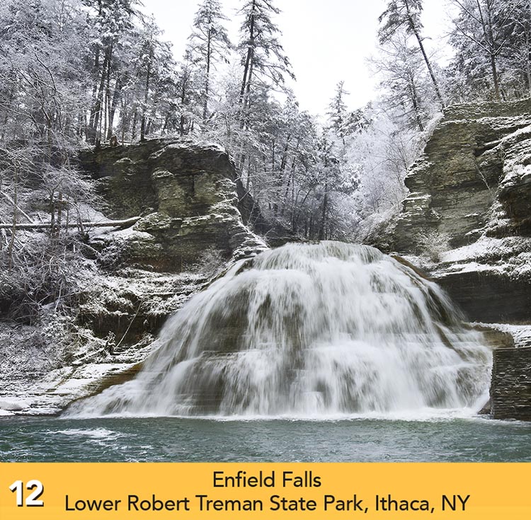 The Waterfalls of the Finger Lakes Calendar is printed by the QMC Group in Liverpool, NY, with soy-based inks on recycled paper with 10% post-consumer waste fiber. The forests are certified reforested under the Print re-leaf guidelines. The cover is 100# gloss cover, and the inside pages are 80# gloss text.